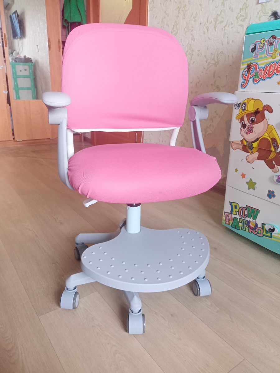 При покупке кресла вы получаете чехол в цвет кресла в подарок для защиты от повреждений или пятен. Также кресло полностью вращается вокруг своей оси, что помогает ребенку комфортно и без труда выйти из-за стола.